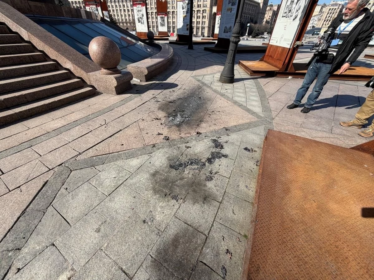 Во время утренней российской атаки на Киев обломки вражеского дрона упали возле монумента Независимости, на Майдане Независимости.