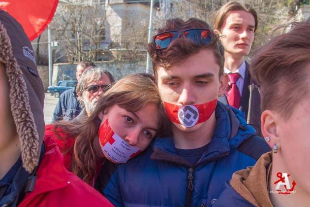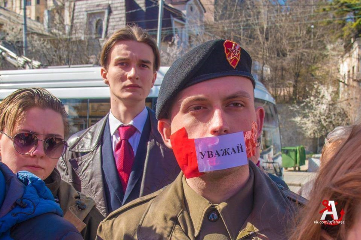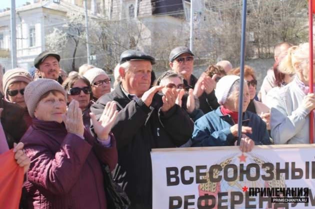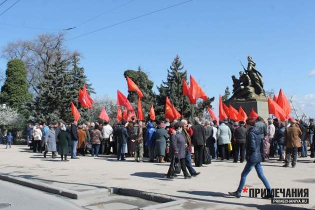 В аннексированном Севастополе около памятника комсомольцам на митинг собралось не более 200 человек. Они требовали от руководства России выполнить свои обещания.
