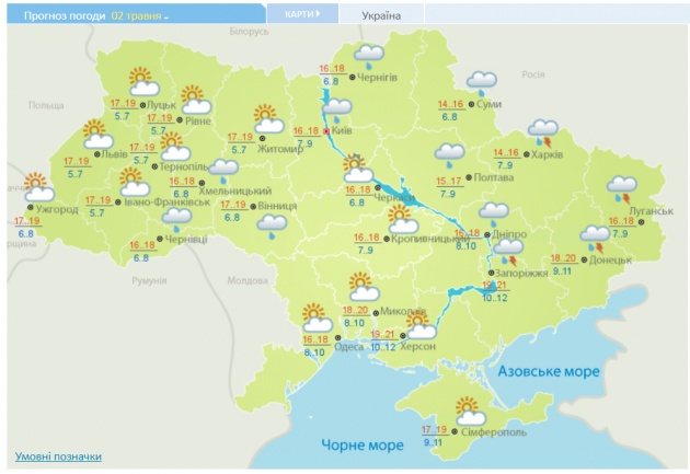 Кроме того, 1-2 мая на Западе, в центральных областях и на Востоке Украины будет преимущественно 14-16 градусов тепла днем. Ночью похолодает до +6+8.