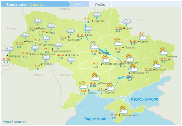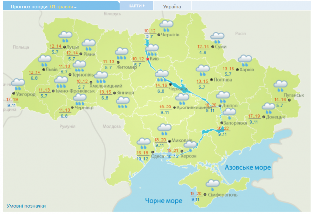 "1 мая в среду в большинстве регионов все еще будут идти дожди. В Киевской области и в самом Киеве могут пройти грозы. Это уже является предвестником лета. Хотя температура воздуха все еще не совсем летняя", – отметил метеоролог.