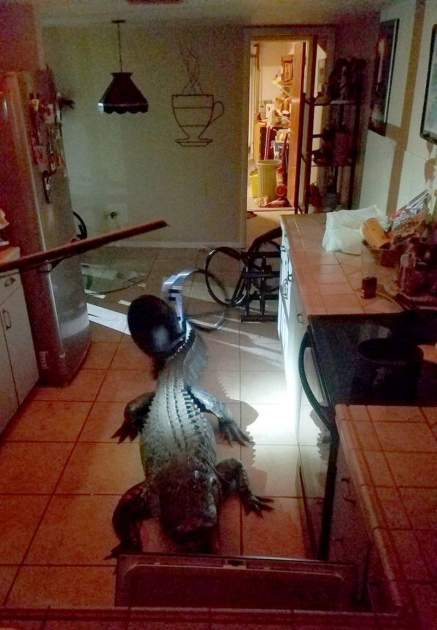 В городе Клируотер, штат Флорида, аллигатор длиной 3,3 метра ночью забрался в жилой дом, выбив стекло в окне, и устроил погром. Рептилия сломала кухонный стол и стулья, повредила стены и разбила несколько бутылок вина, пишет novosti-n.