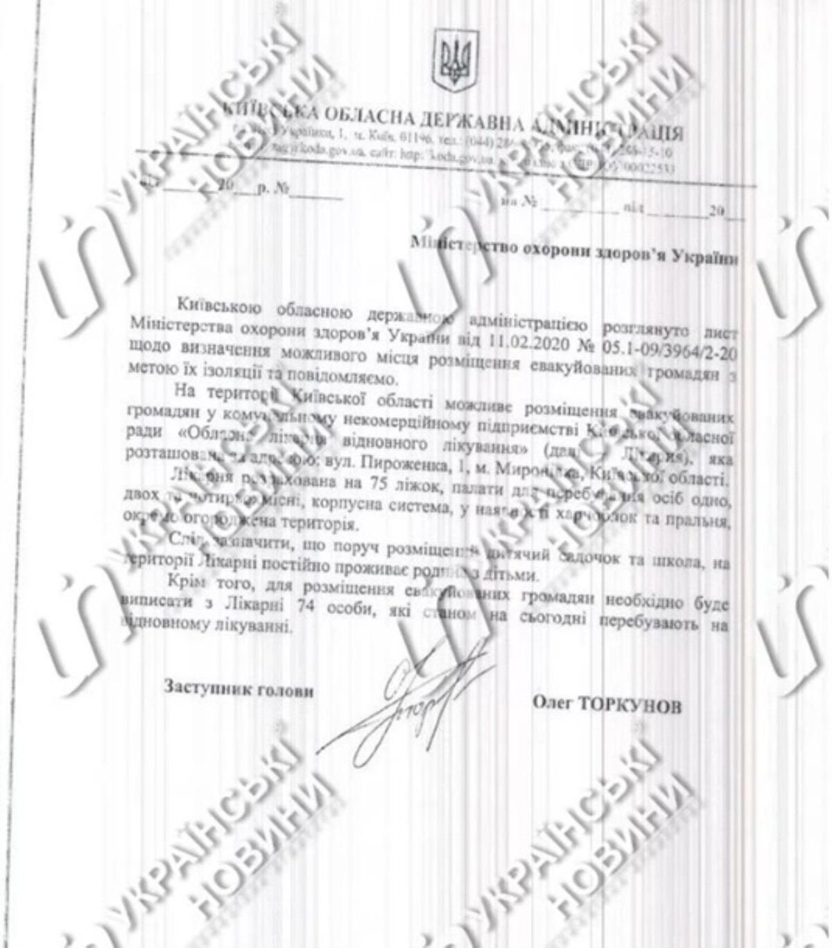 Киевская областная государственная администрация заявила Министерству здравоохранения о готовности больницы в Мироновке принять эвакуированных из китайского Уханя украинцев.