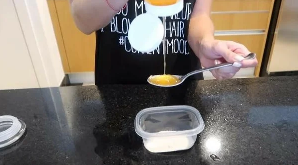 В миске смешайте столовую ложку измельченных в муку овсяных хлопьев с 1 столовой ложкой меда.