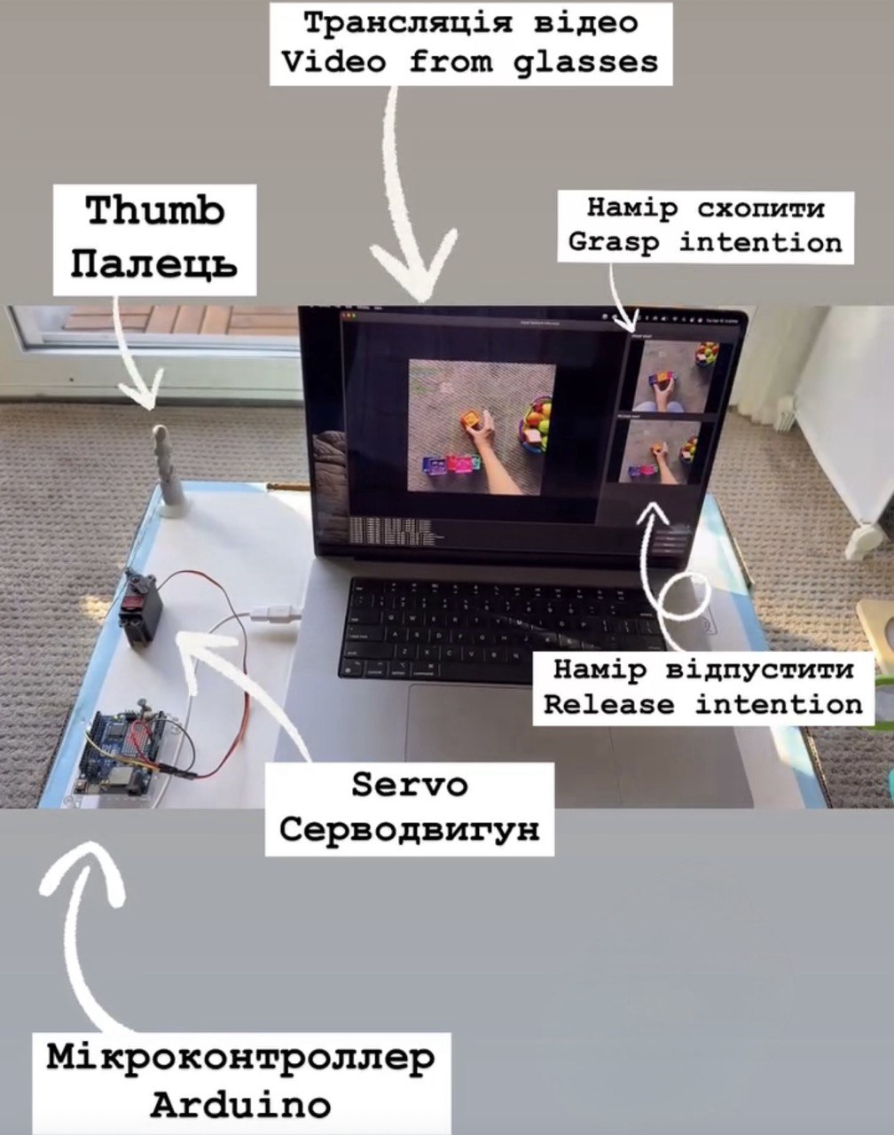 «Вся конструкция пока ориентирована на проверку принципа работы: корректно ли намерение, распознанное системой компьютерного зрения, преобразуется в физическое движение. Форм-фактор будущего носимого решения пока не зафиксирован», — поясняет Яна.