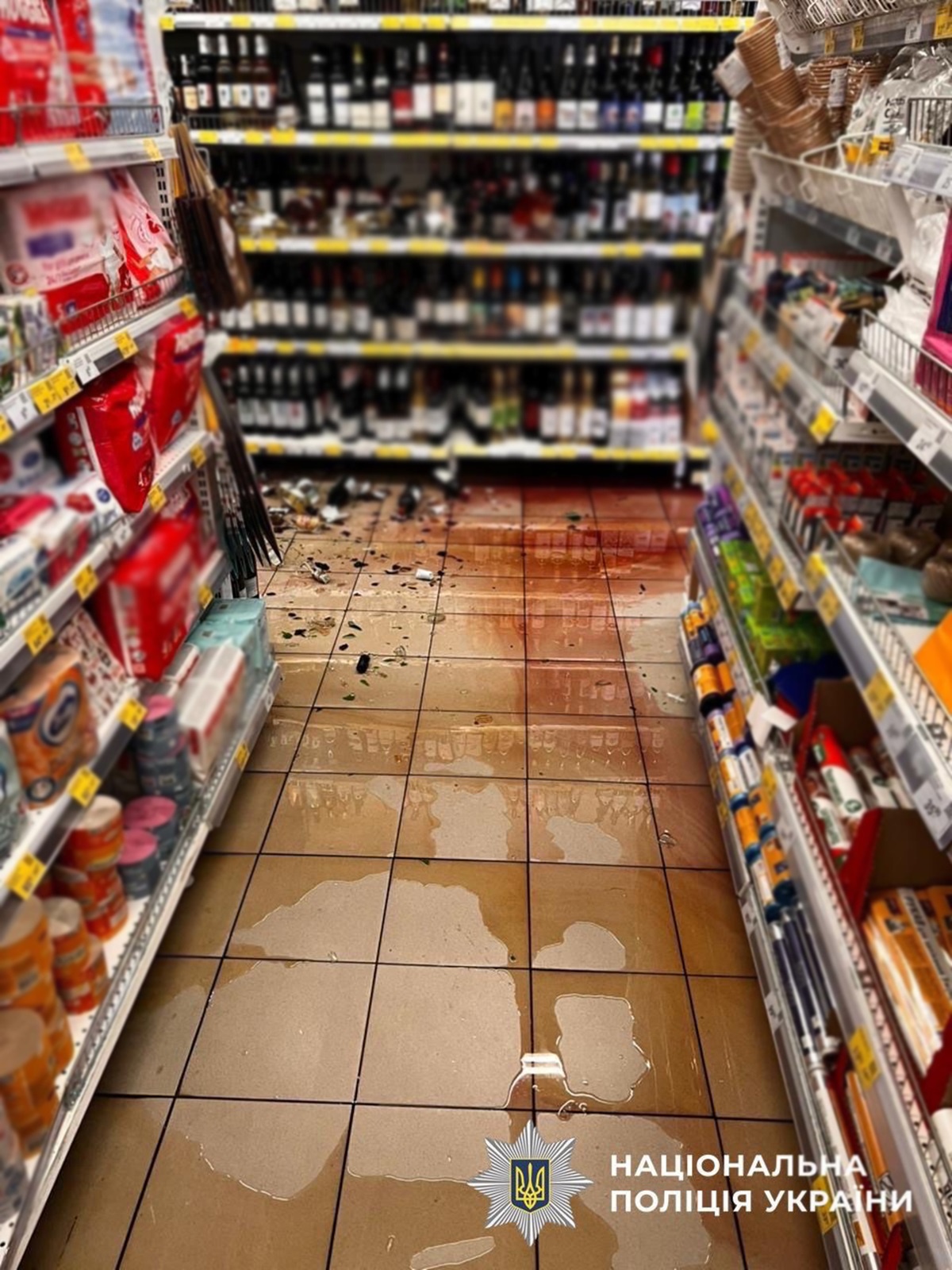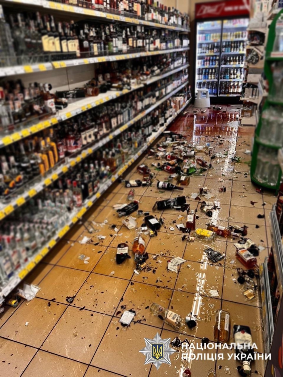 Вказано, що до Дніпровського управління поліції надійшло повідомлення від адміністраторки магазину, яка повідомила про те, що один з покупців нецензурно лаєтья, б’є та скидає з полиць пляшки з алкоголем.