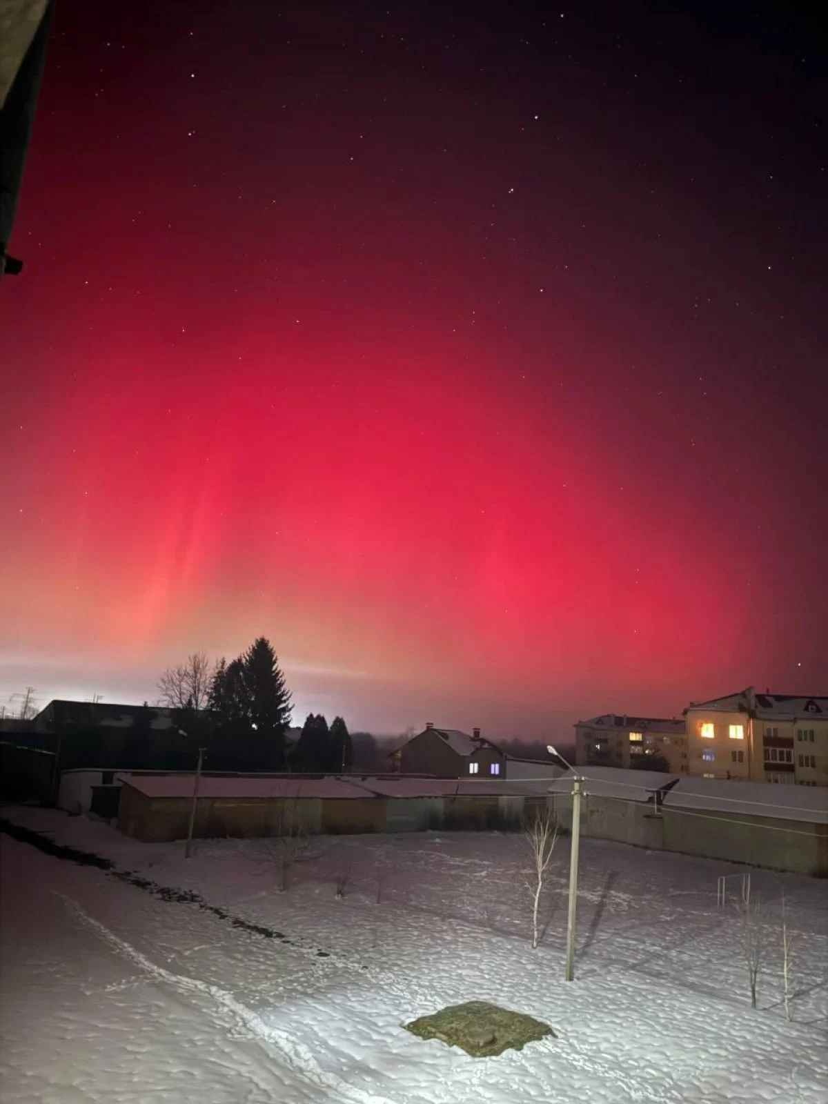 Минулої ночі в Україні можна було побачити яскраве північне сяйво. Різнокольорові вогні червоного, рожевого і зеленого відтінків виблискували в західних областях, на півночі країни і навіть у Дніпропетровській області.